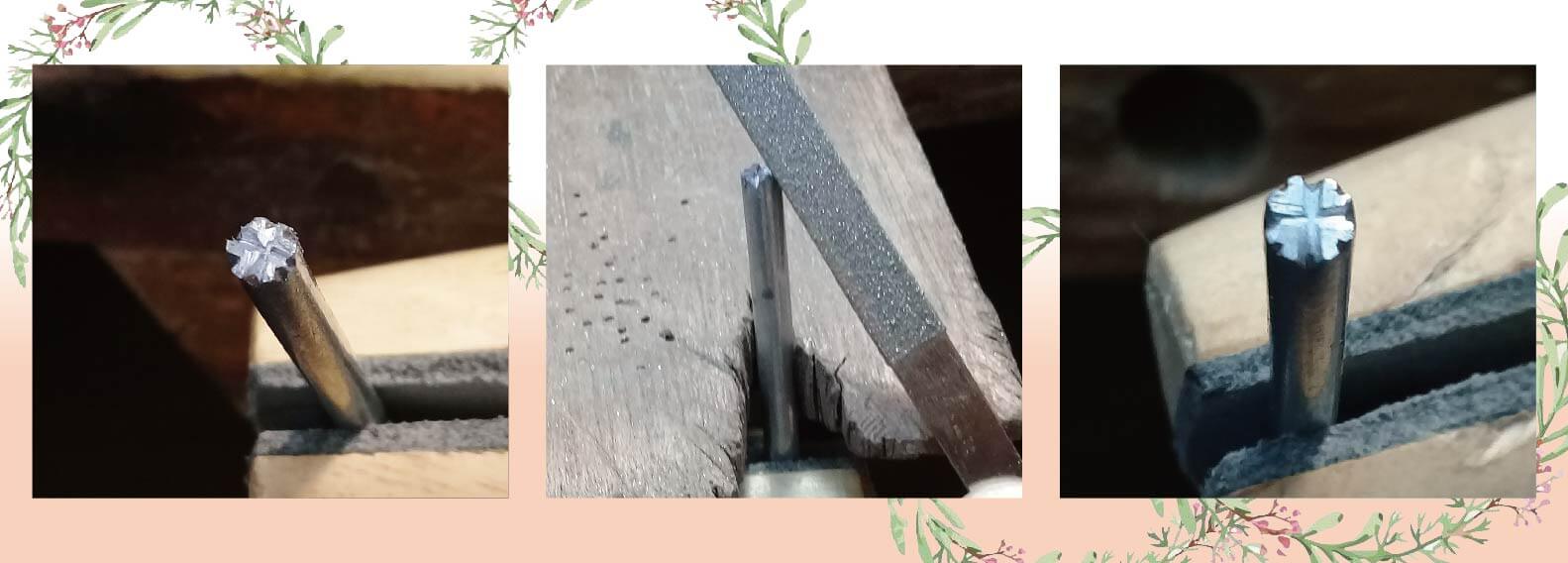 步驟3:再用正三角形銼刀對邊角作細修,一個漂亮的幸運草印章就完成了!